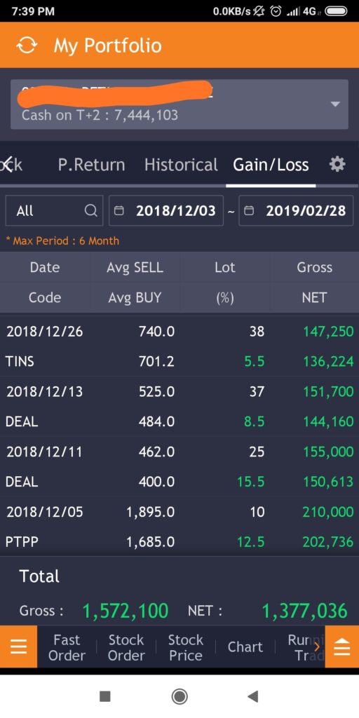 Berikut adalah beberapa histori hasil trading dan investasi saham klien kami yang dapat kami bagikan: